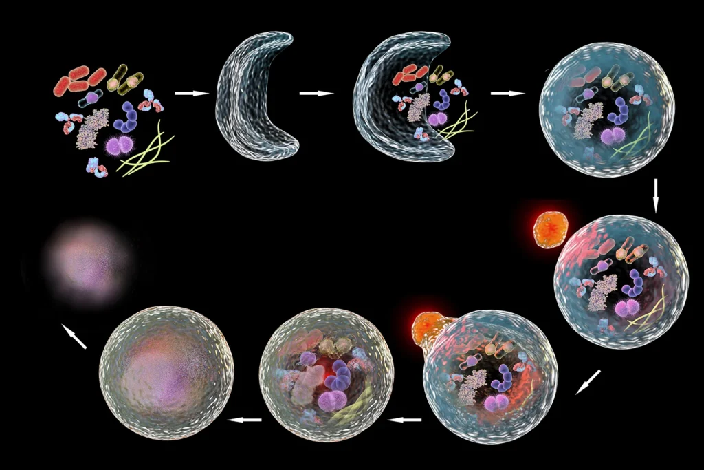 3. Recycling – The broken-down components are repurposed for energy production and cellular renewal.