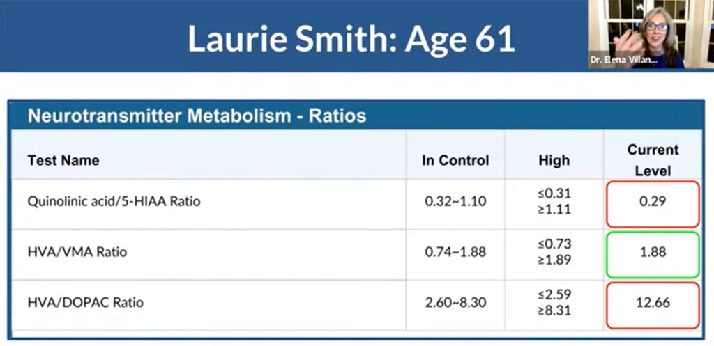The first clue came from her Organic Acids Test. Her HVA/DOPAC ratio was elevated, a pattern that points to decreased dopamine conversion. When the body can’t properly convert dopamine, levels in the brain build up too high. And high dopamine is directly linked to trouble sleeping, anxiety, panic attacks, and a mind that won’t stop racing. Those were the exact symptoms that had been making Laurie’s life unlivable for years. The top causes of decreased dopamine conversion? Toxic mold, certain bacterial strains, and chemical toxins. So that’s exactly where we looked next.