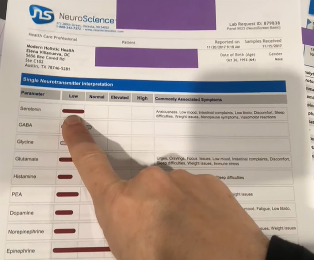 Neurotransmitters aren’t abstract concepts. They’re real chemicals in your brain that can be measured with lab testing. When we tested this man, we could see exactly which neurotransmitters were too low and which were too high. We weren’t guessing. We had data. And that data told us exactly what needed to be corrected.